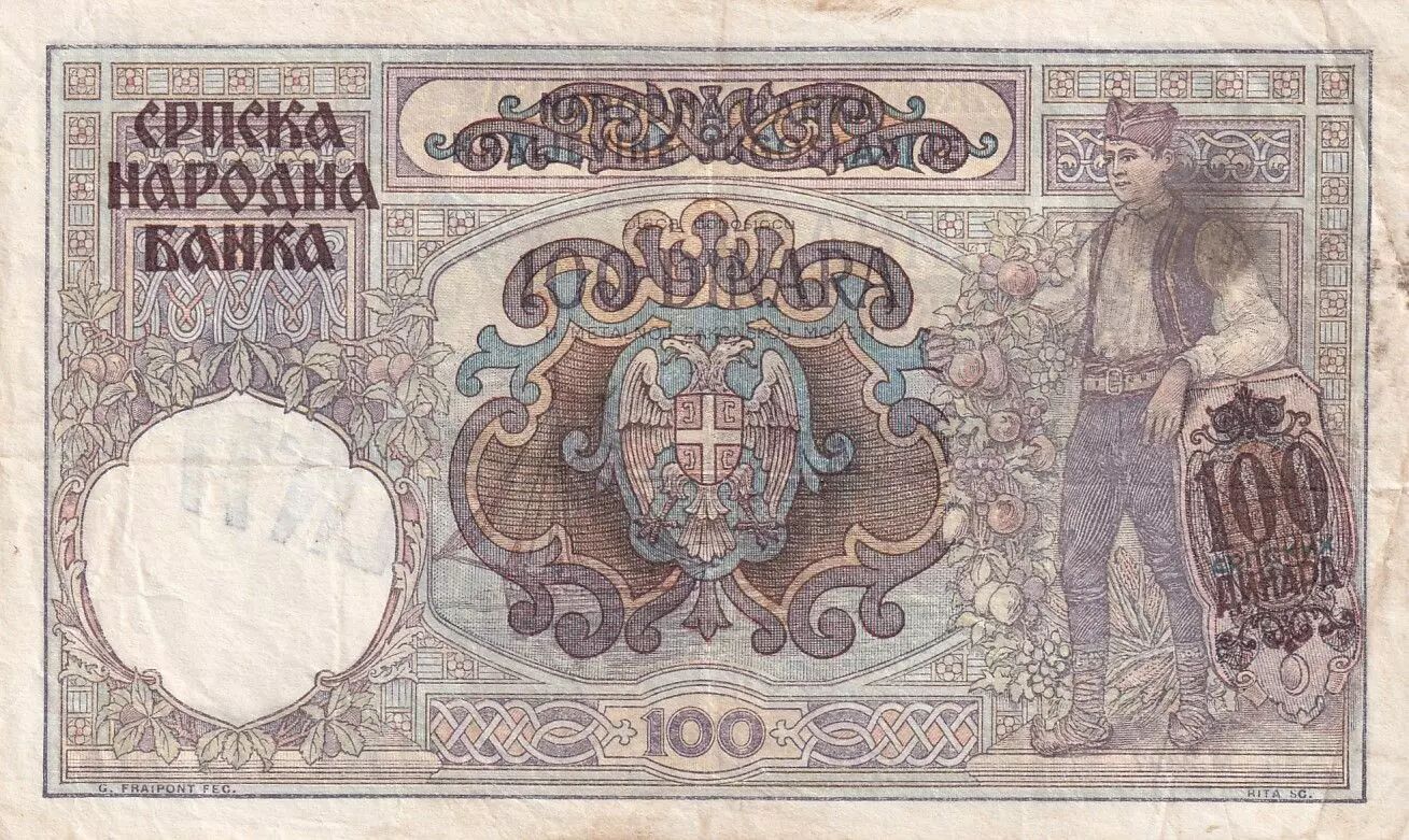 Banknote Serbia 100 Dinara - World War II propaganda banknote - 1941