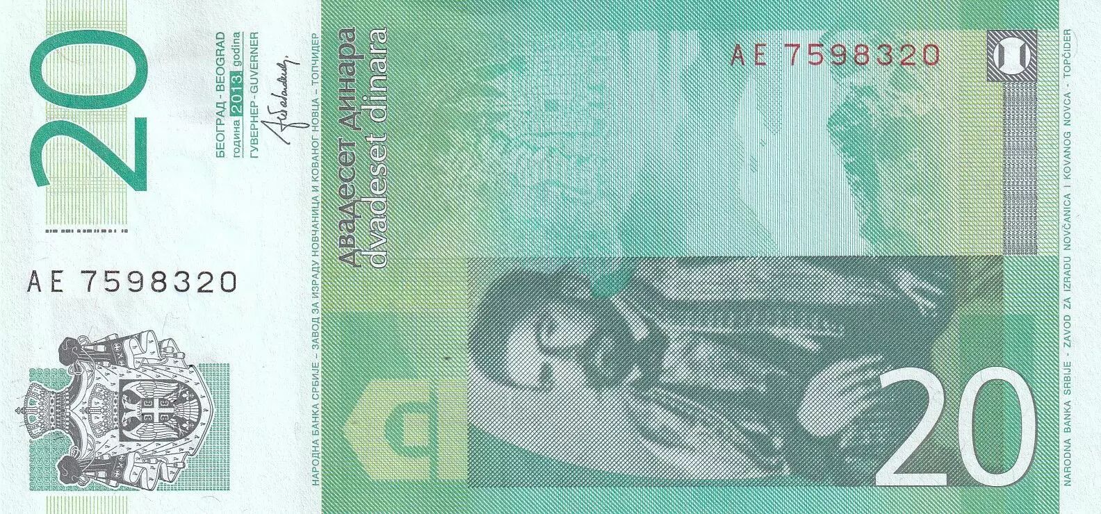 Banknote Serbia 20 Dinara - Petar II - 2013 - Serial AE - P.55b