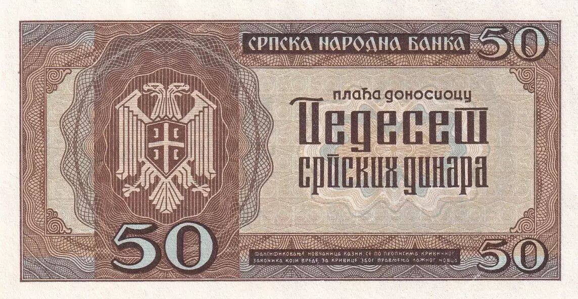 On the banknote, you can see a portrait of Petar Petrovi? II Njego?. The overall graphic design of the banknote incorporates decorative and symbolic elements, reflecting the aesthetics of the time of its issue. The colors used and the typography contribute to the visual identity of this means of payment.
