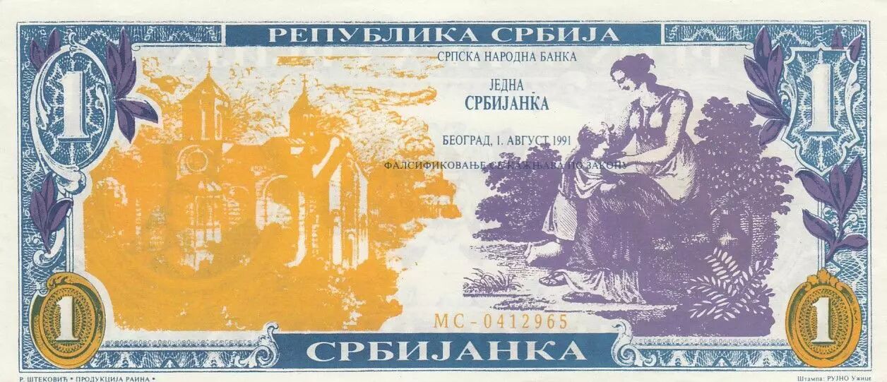 Billet Serbie 1 Srbijanki - Prince Lazar - 1991