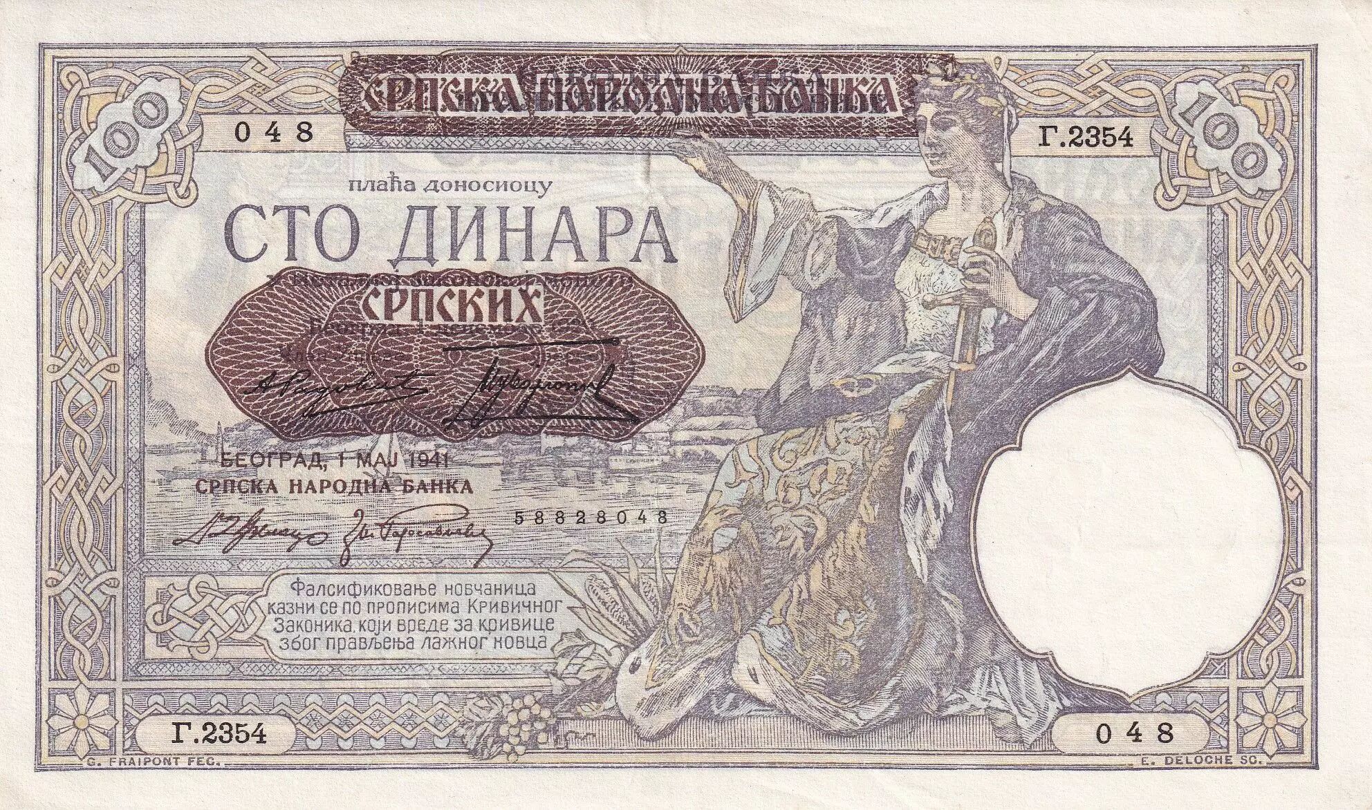 Accueil > Archivage > Serbie 100 Dinara - Femme assise - Paysan - 1941 - P.23