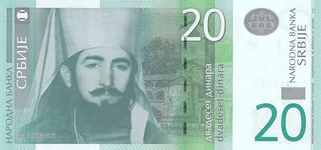 Ce billet de banque de Serbie, d'une valeur nominale de 20 dinara, a été émis en 2013 et appartient à la série BC. Il mesure 135 mm de long et 64 mm de large.
