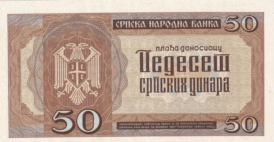 Le billet de 50 Dinara de 1942, Série B.1094, émis par la Serbie, est un témoignage de l'histoire monétaire de cette période. Ce billet présente une valeur nominale de 50 Dinara et a été mis en circulation en 1942.