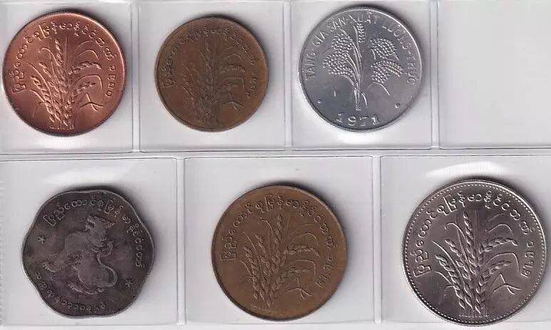 This set consists of a set of 5 Burmese coins and 1 Vietnamese coin.