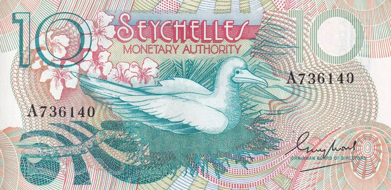 Accueil > Billets du Monde > Billets d'Afrique > Seychelles > Seychelles 10 Rupees - Oiseau - Jeune fille cueillant des fleurs - ND (1979) - Série A - P.23