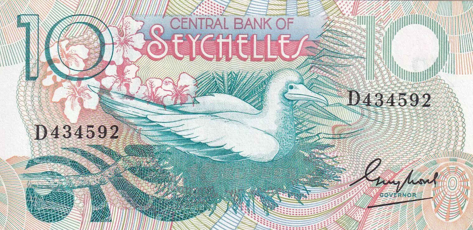 Billet Seychelles 10 Rupees - Oiseau - Jeune fille cueillant des fleurs - ND (1983) - Série D - P.28