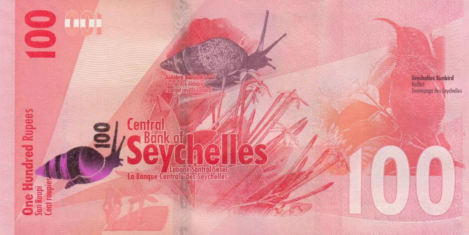 Banknote Seychelles 100 Rupees - Black Paradise Flycatcher - 2016 - Serial BK