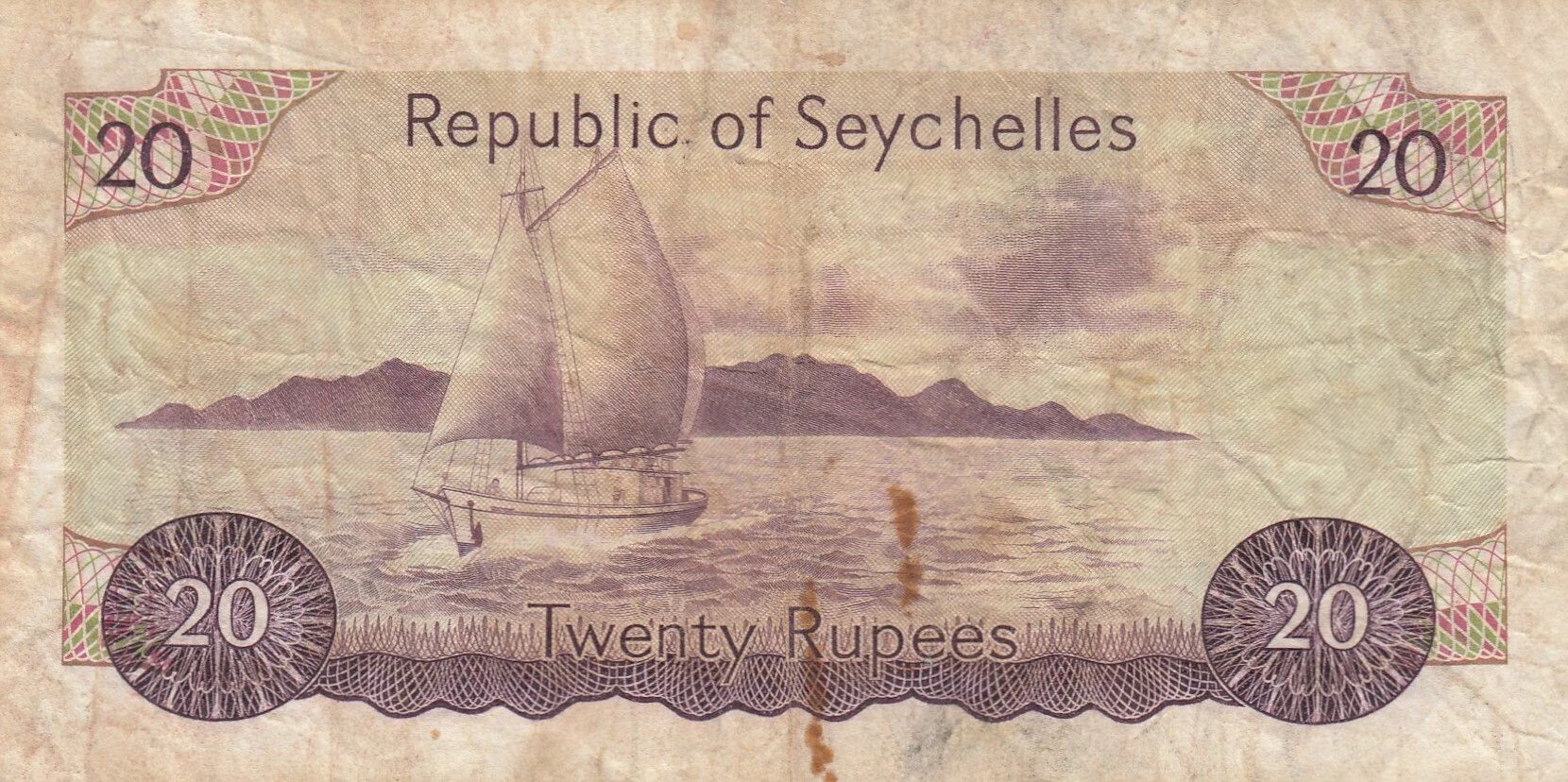 Ce billet de banque, d'une valeur nominale de 20 rupees, a été émis aux Seychelles en 1977. Il s'agit d'un billet de la Série A/I.