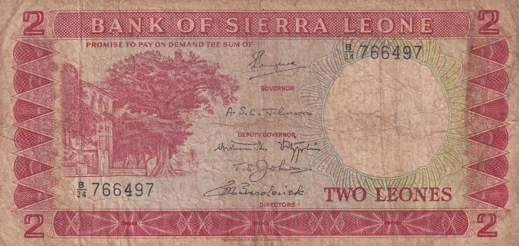 Ce billet de 2 Leones de 1970 constitue un témoignage de l'histoire monétaire et culturelle de la Sierra Leone.