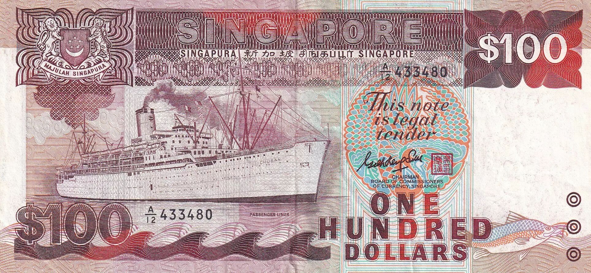 Home > > Singapore 100 Dollars - Ship - Planes - ND (1985) - P.23a