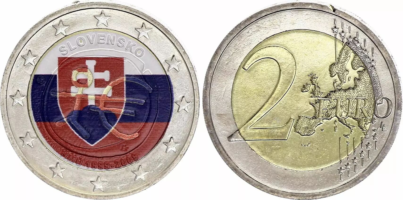 Home > > Slovakia 2 Euros - 10 years EMU - Colorised - 2009 - Bimetallic
