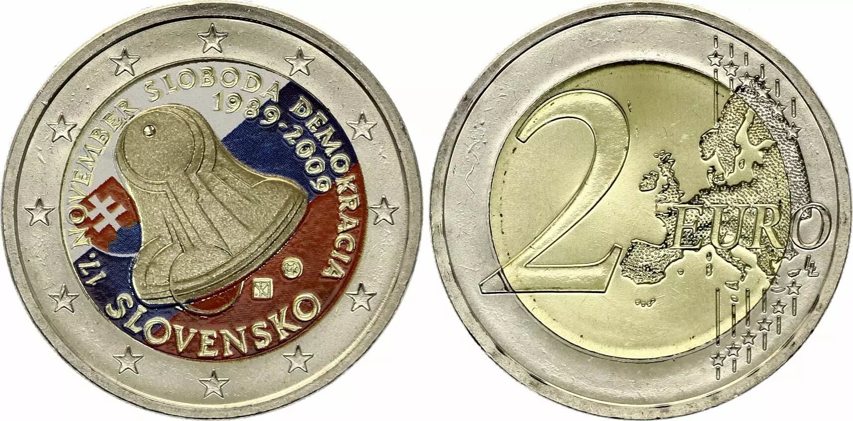 Coin Slovakia 2 Euros - Velvet Revolution - Colorised - 2009