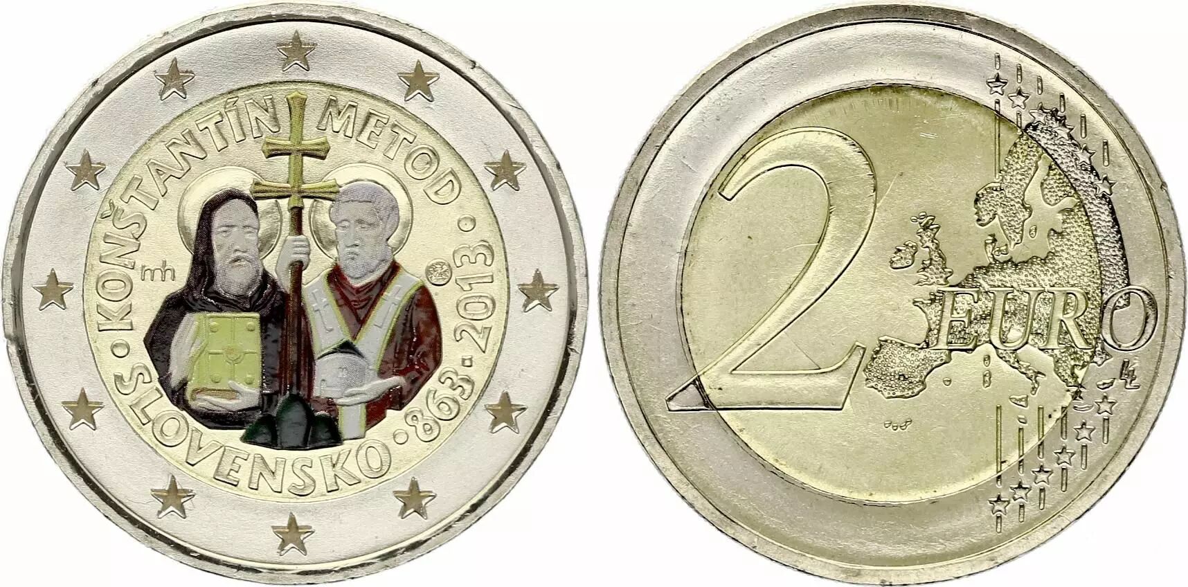 Pièce Slovaquie 2 Euros - Arrivée de Cyrille et Méthode - Colorisée - 2013