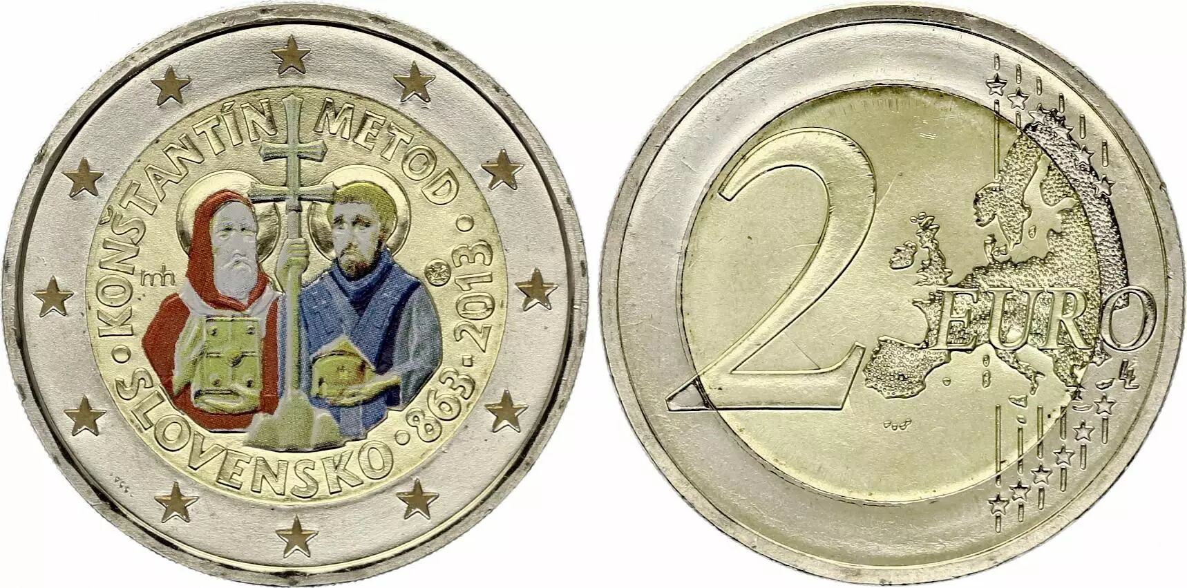 Pièce Slovaquie 2 Euros - Arrivée de Cyrille et Méthode - Colorisée - 2013