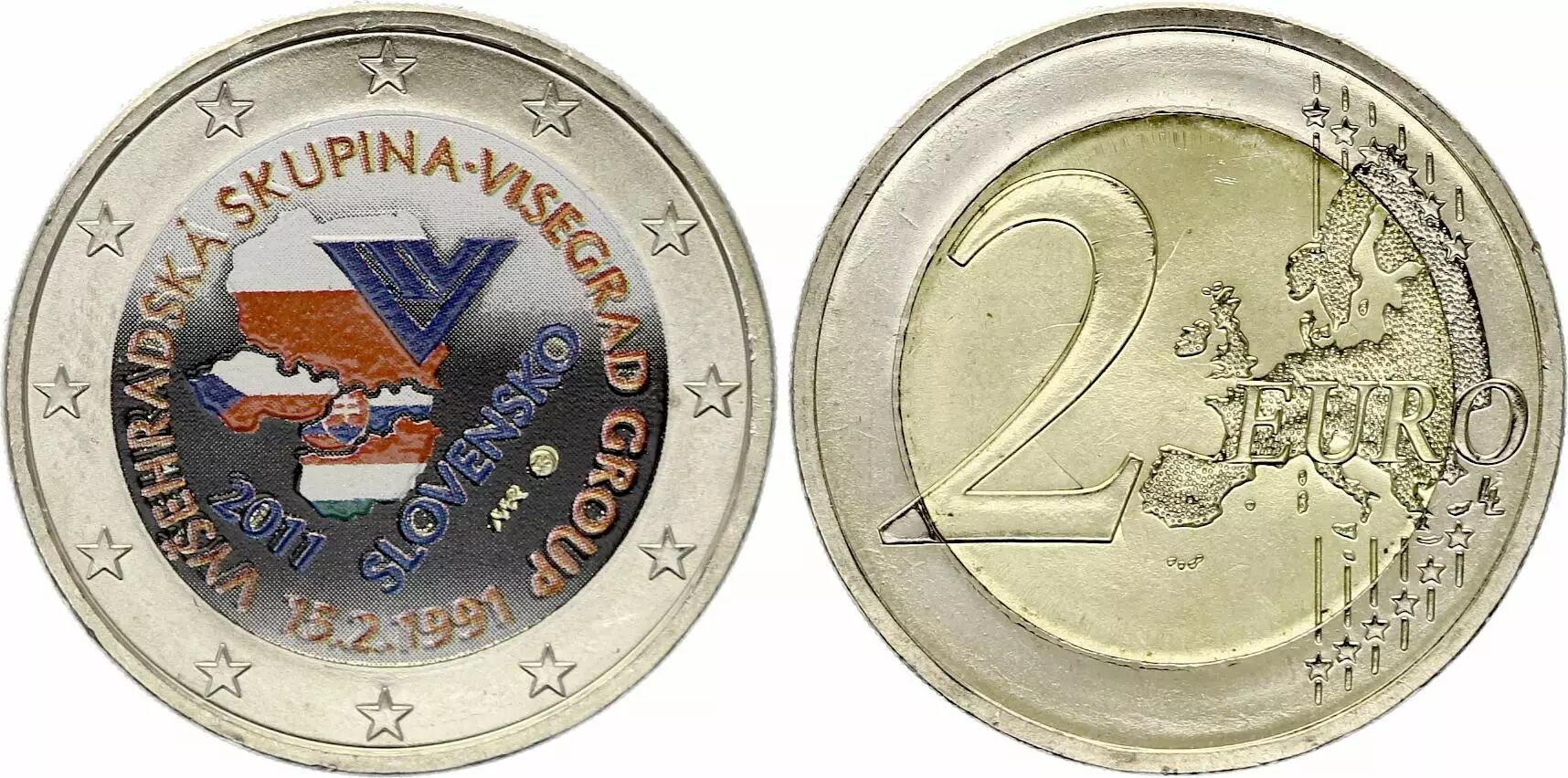Pièce Slovaquie 2 Euros - Groupe de Visegrad - Colorisée - 2011