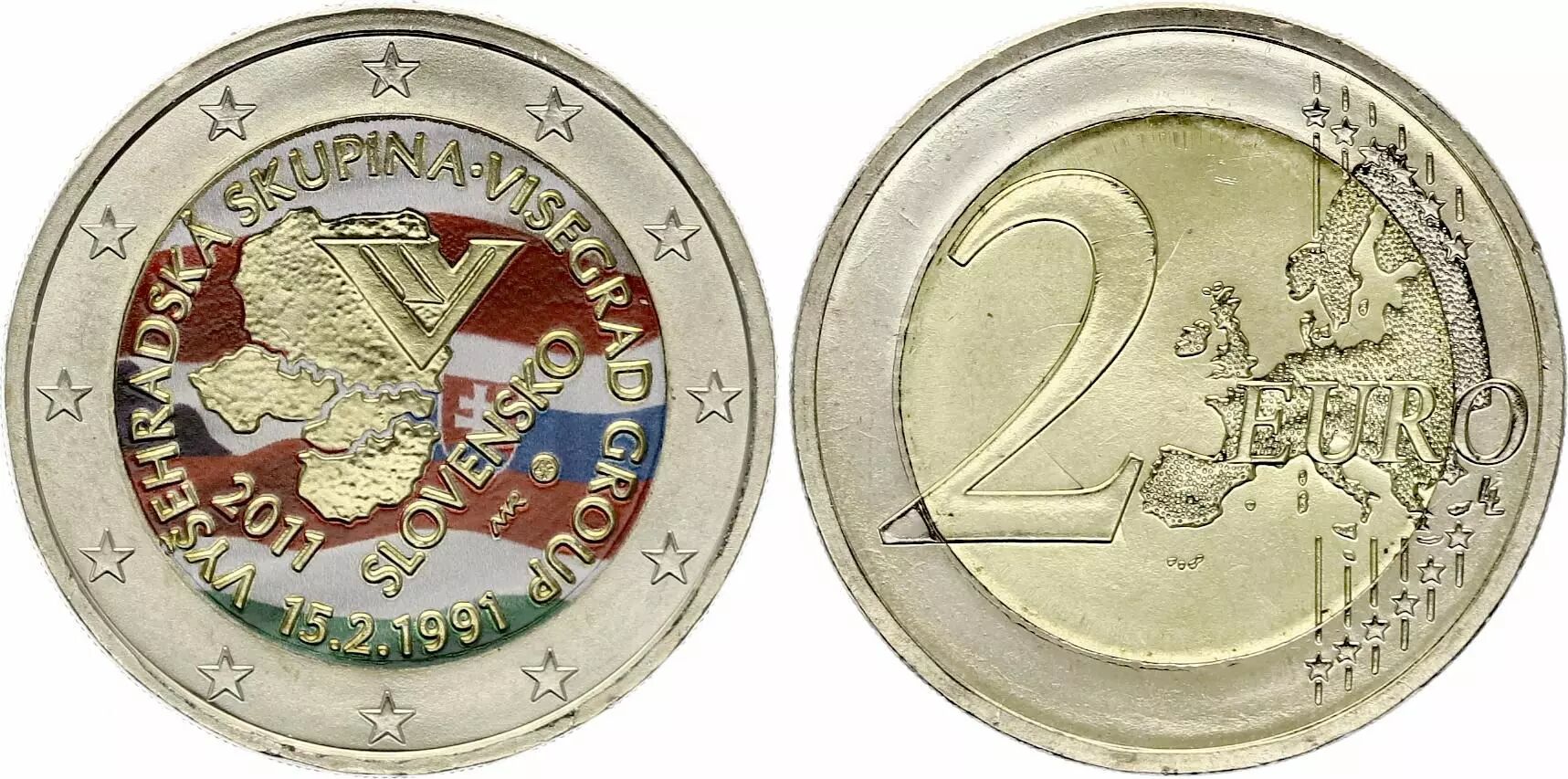 Pièce Slovaquie 2 Euros - Groupe de Visegrad - Colorisée - 2011