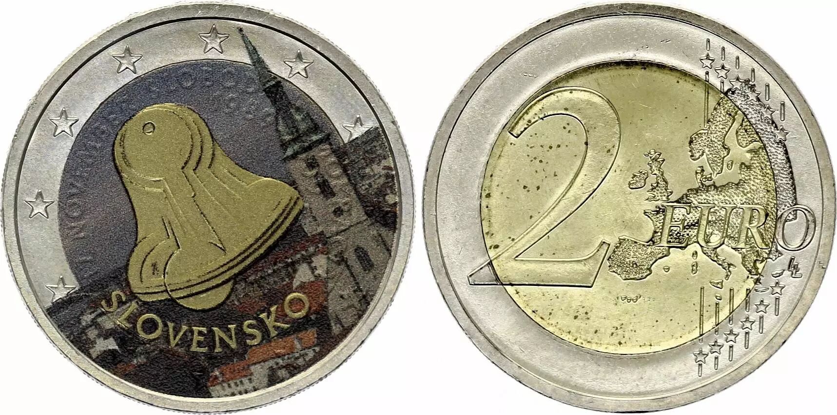 Pièce Slovaquie 2 Euros - Révolution de velours - Colorisée - 2009
