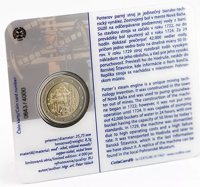 Accueil > Archivage > archivage-Archivage > Slovaquie Coincard 2 Euros Commémo. BU SLOVAQUIE 2022 - 300 ans de la première machine à vapeur industrielle