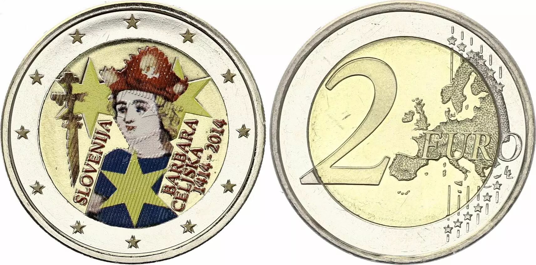 Coin Slovenia 2 Euros - Barbara Celiska - Colorised - 2014