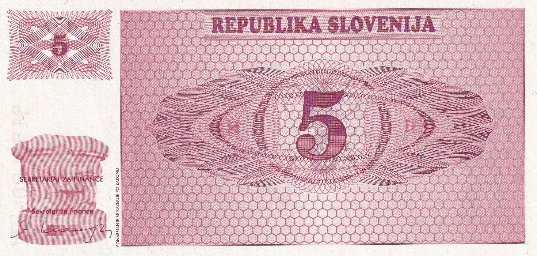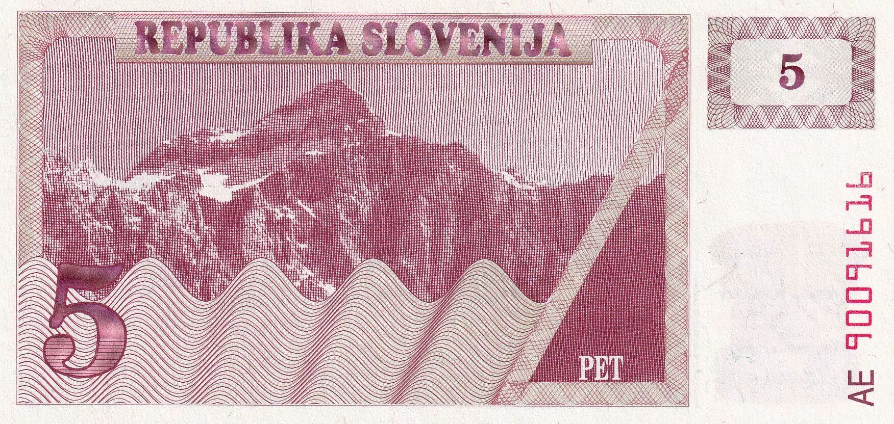 Banknote Slovenia 5 Tolar - Mountain - 1990 - UNC - P.3