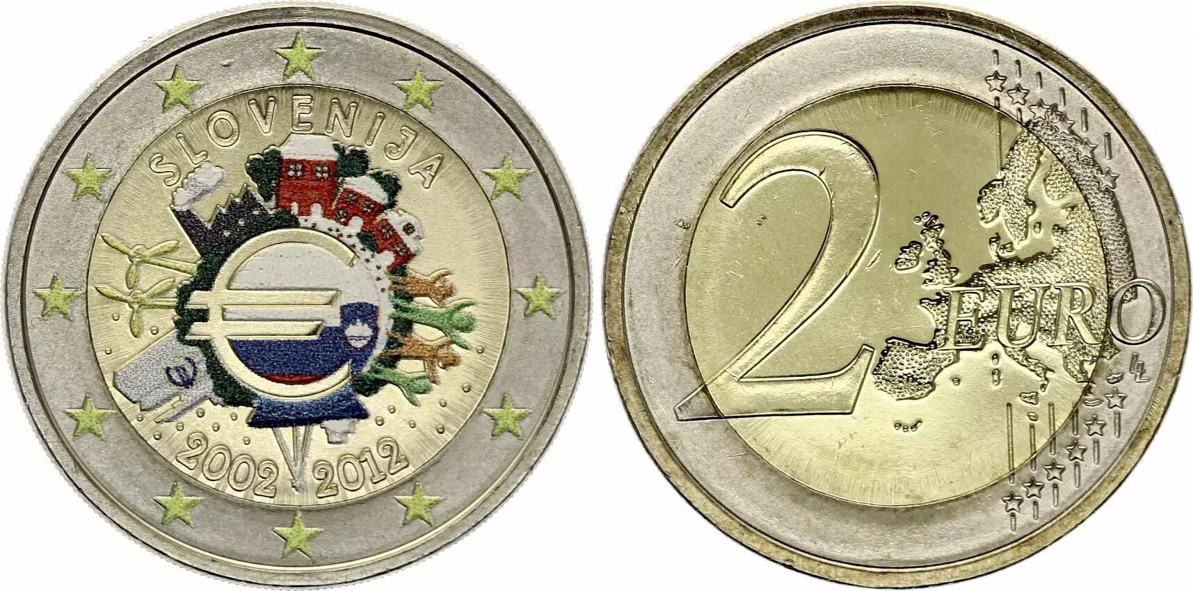 Pièce Slovénie 2 Euros - 10 ans de l'Euro - Colorisée - 2012