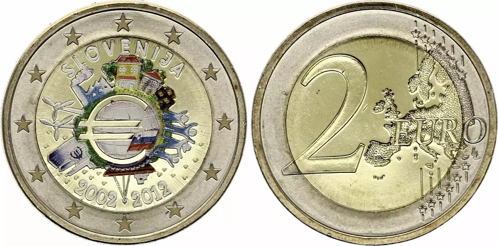 Pièce Slovénie 2 Euros - 10 ans de l'Euro - Colorisée - 2012