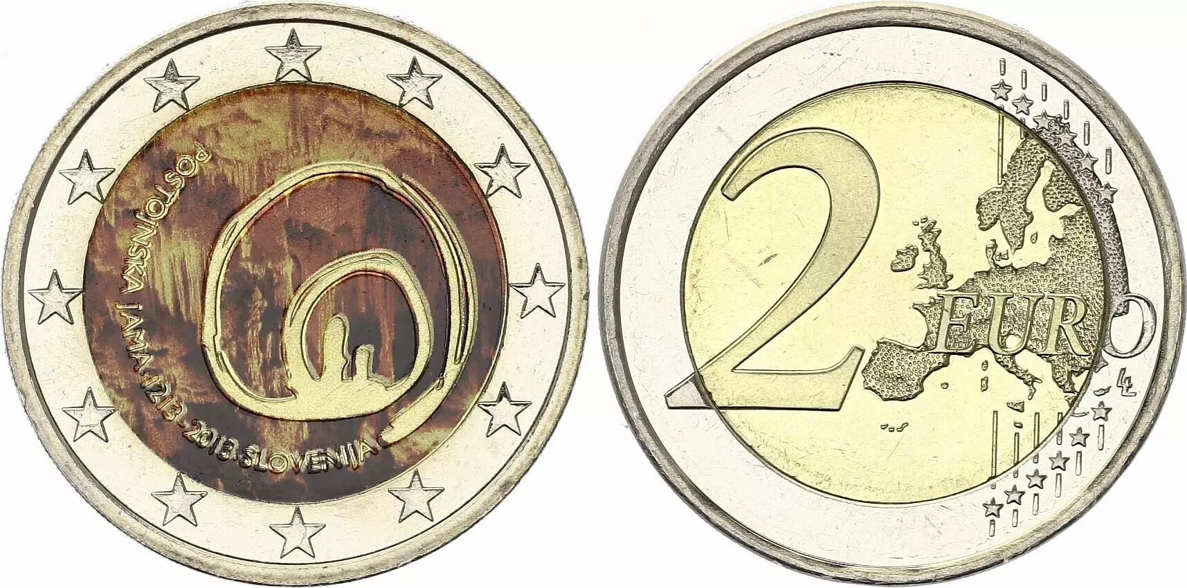 Pièce Slovénie 2 Euros - Grotte de Postojna - Colorisée - 2013