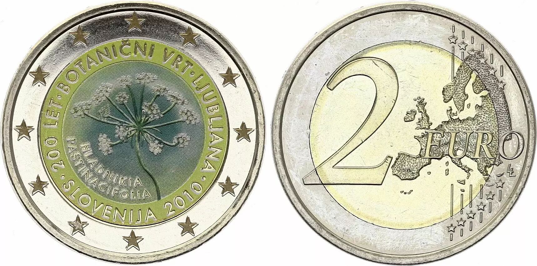 Pièce Slovénie 2 Euros - Jardin Botanique de Ljubljana - Colorisée - 2010
