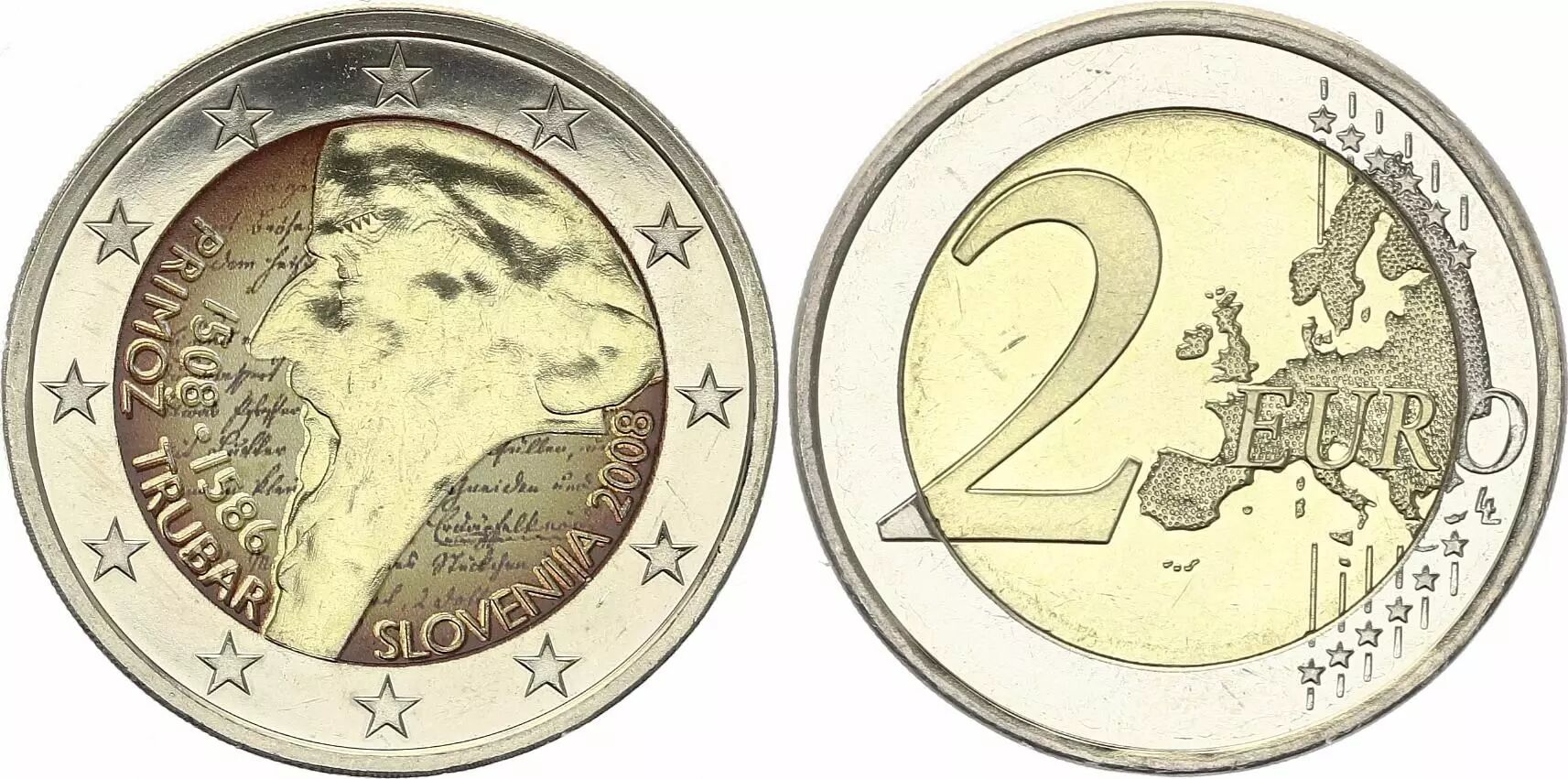 Pièce Slovénie 2 Euros - Primoz Trubar - Colorisée - 2008