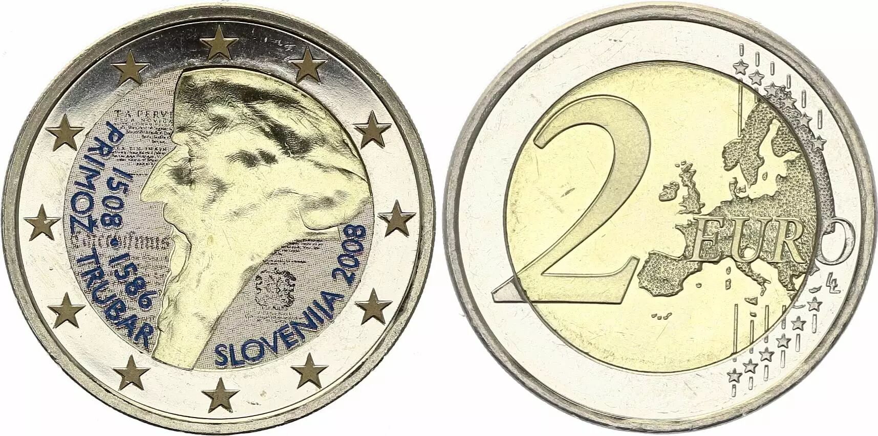 Pièce Slovénie 2 Euros - Primoz Trubar - Colorisée - 2008
