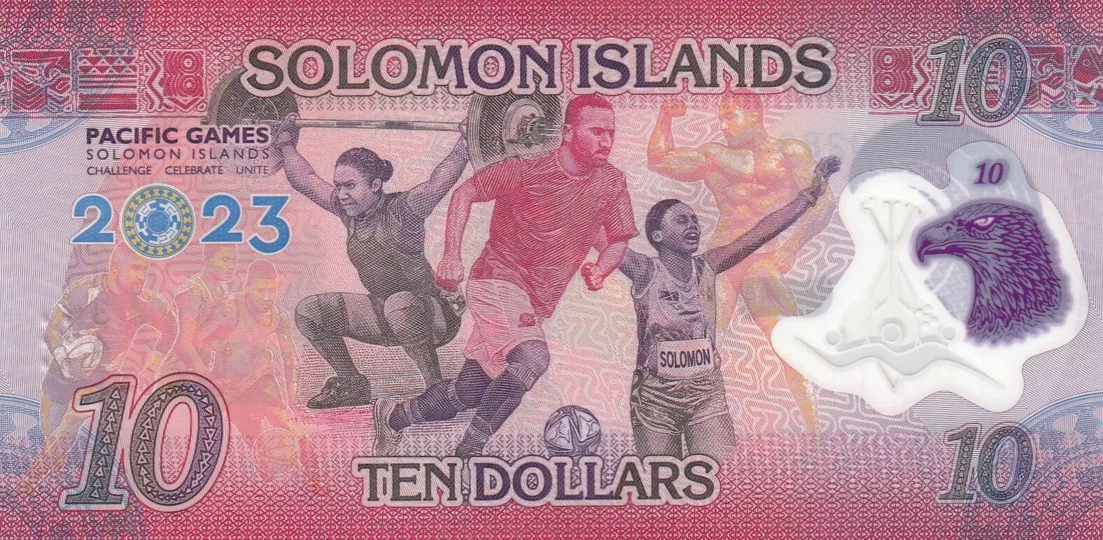 Home > World Banknotes > Oceania Banknotes > Solomon Islands > Solomon Islands 10 Solomon Islands dollars, flag - Polymer - 2023 - Mint - Series SI/23