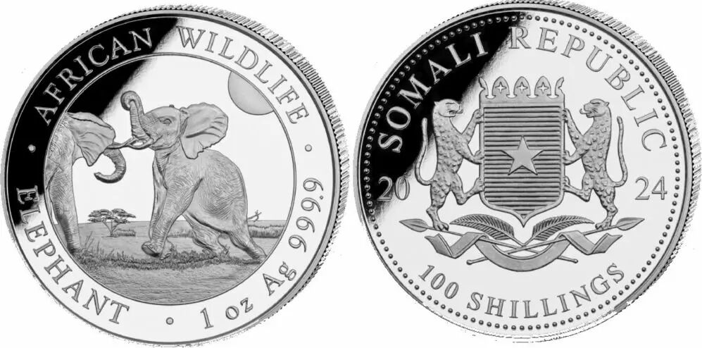 Home > > Somalia 100 Shillings - 1 Ounce Silver Somalia 2024 - Elephant