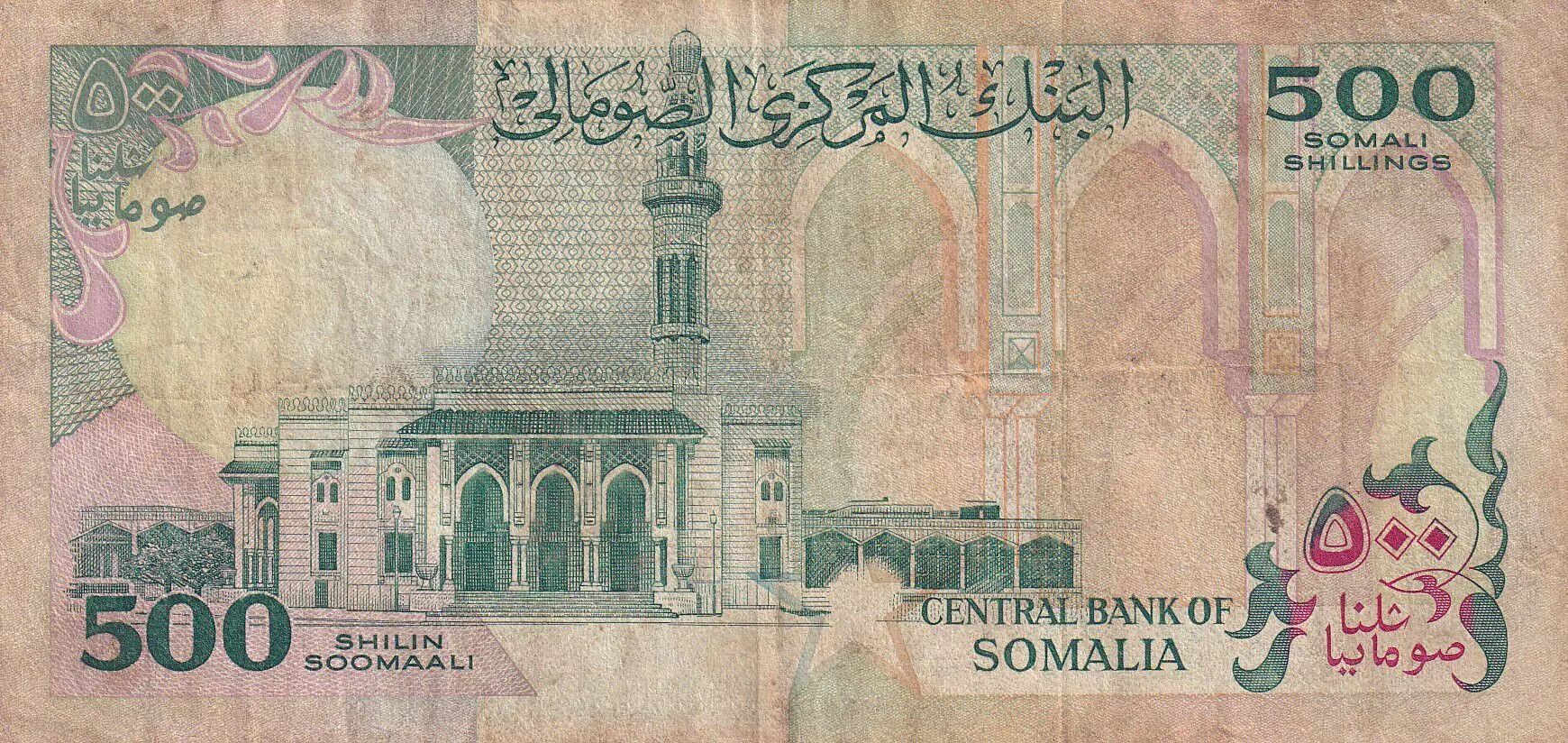 Home > > Somalia 500 Shillings - Fisherman, lobster, - Mosque - 1989 - P.36a