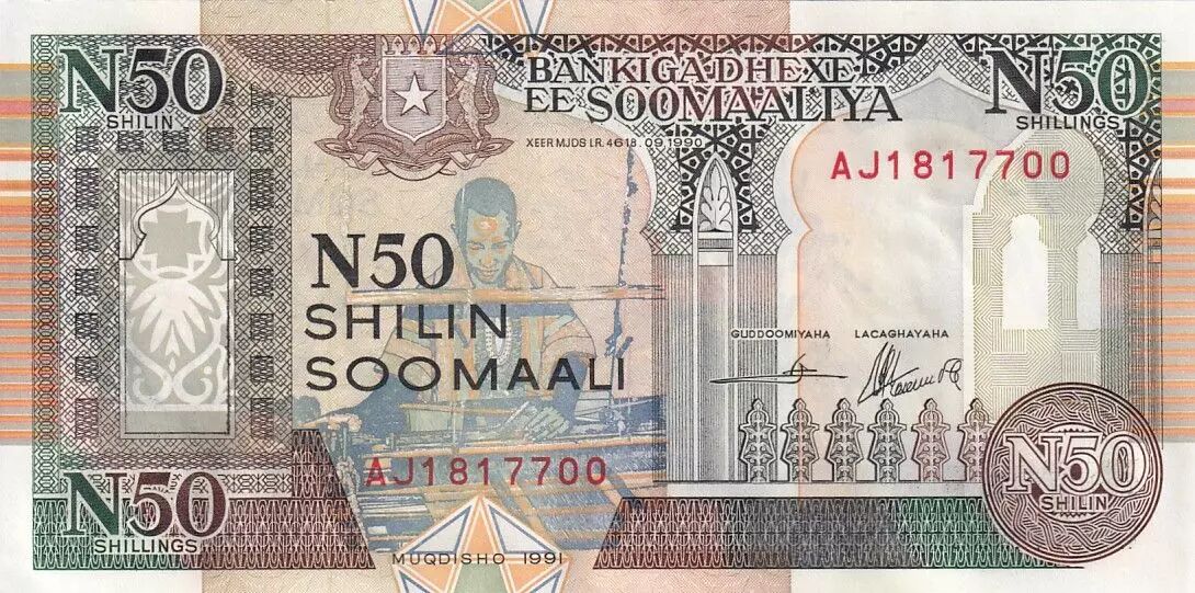 Accueil > Billets du Monde > Billets d'Afrique > Somalie > Somalie 50 N. Shillings - Homme tissant - enfants, âne - 18-09-1990 - Série AJ