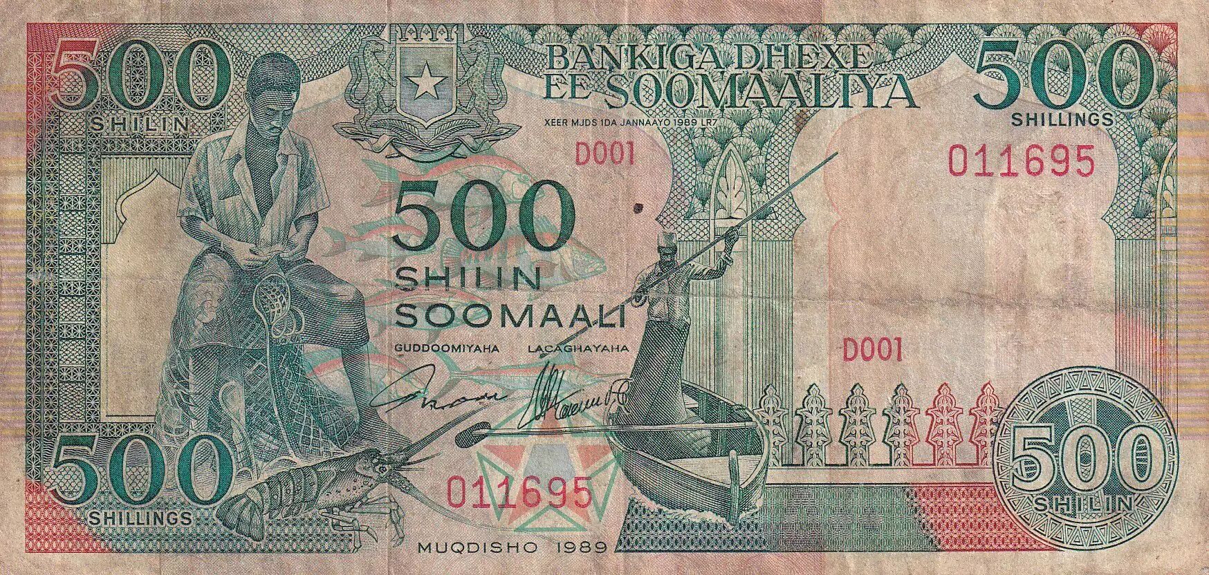 Accueil > Archivage > Somalie 500 Shillings - Pêcheur, langouste - Mosquée - 1989 - P.36a