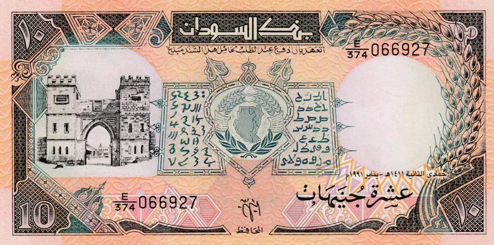 Billet Soudan 10 Pounds Porte Ville ancienne - Banque Centrale - 1991