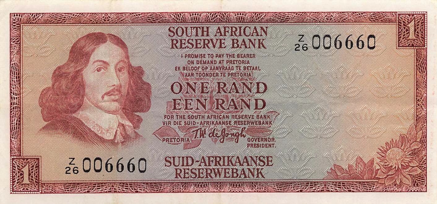 Banknote South Africa 1 Rand - Jan Van Riebeeck - ND (1973) - Remplacement - P.115