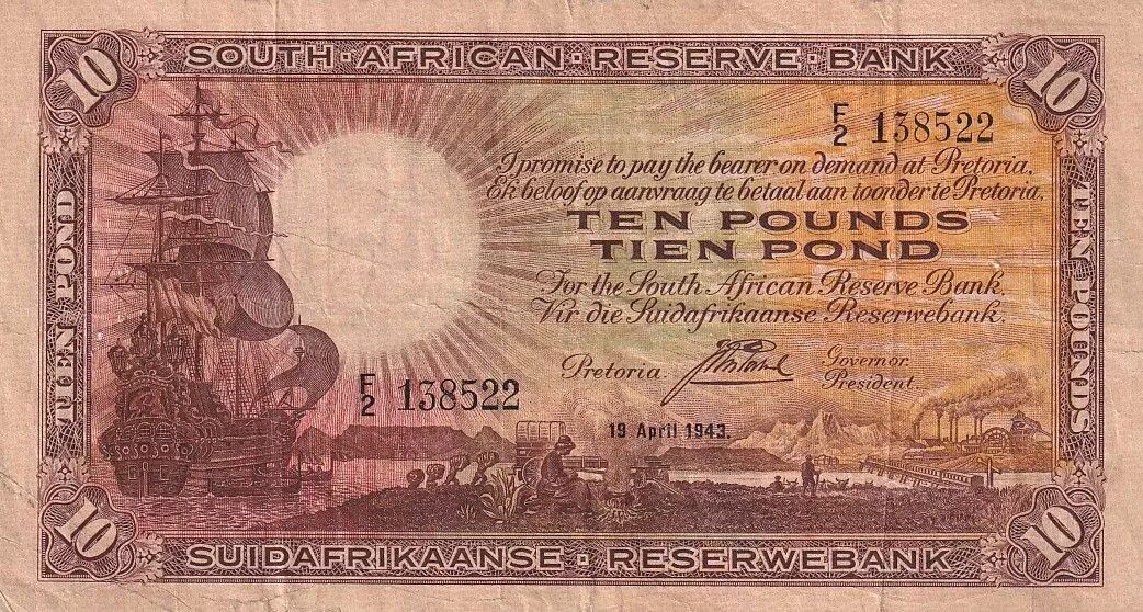 Home > > South Africa 10 Pound - Boat - 19-04-1943- Serial F2