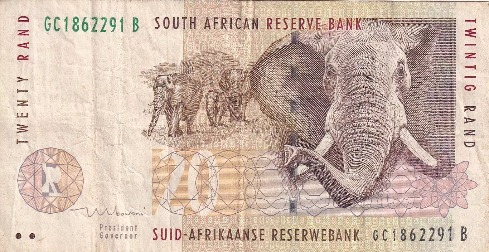 Home > > South Africa 20 Rand - Elephants - Mine - ND (1993-1999) - P.124b
