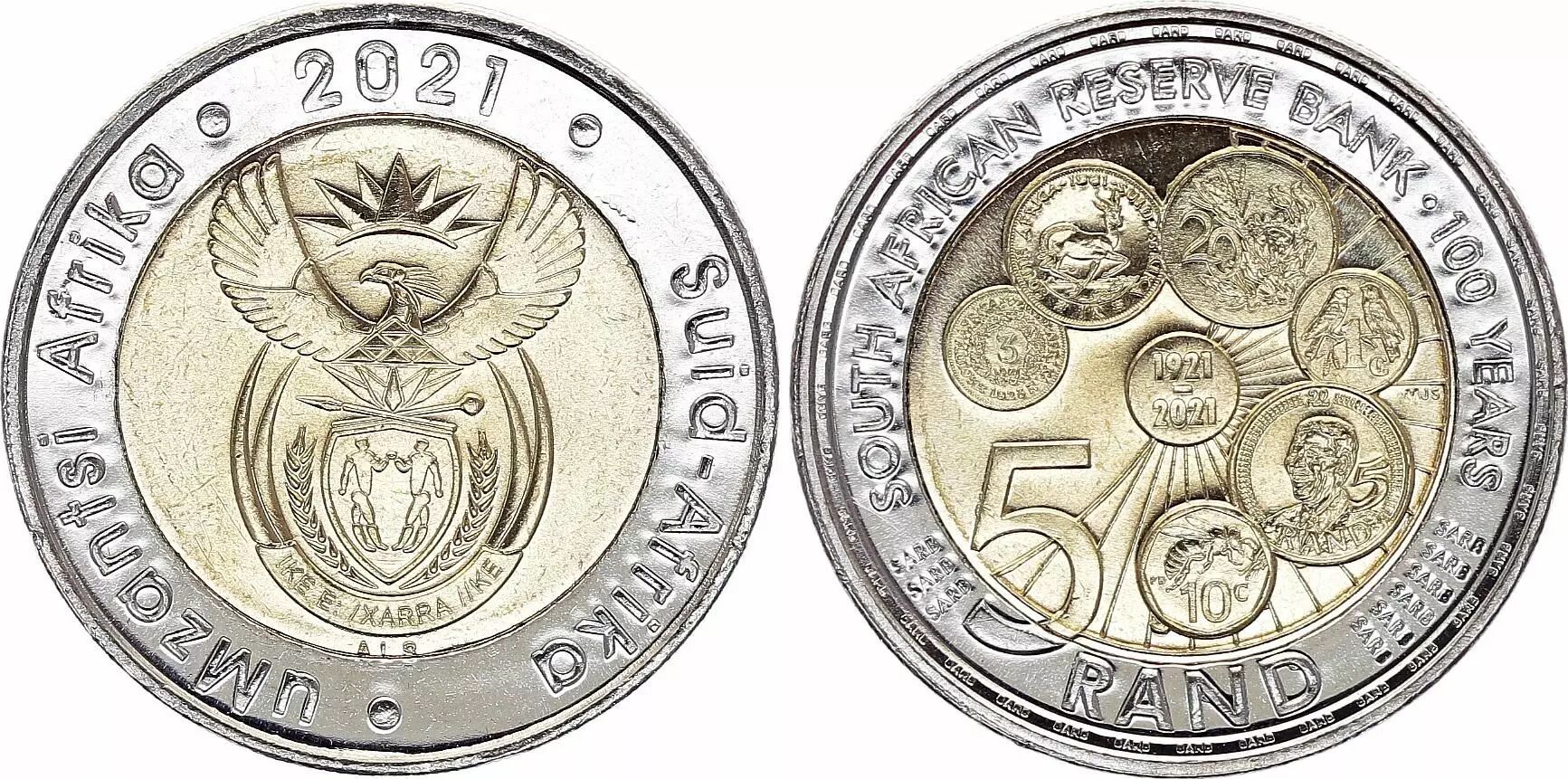 Home > > South Africa 5 Rand - 100 years of Central Bank - Bimetalic - 2021 - MS
