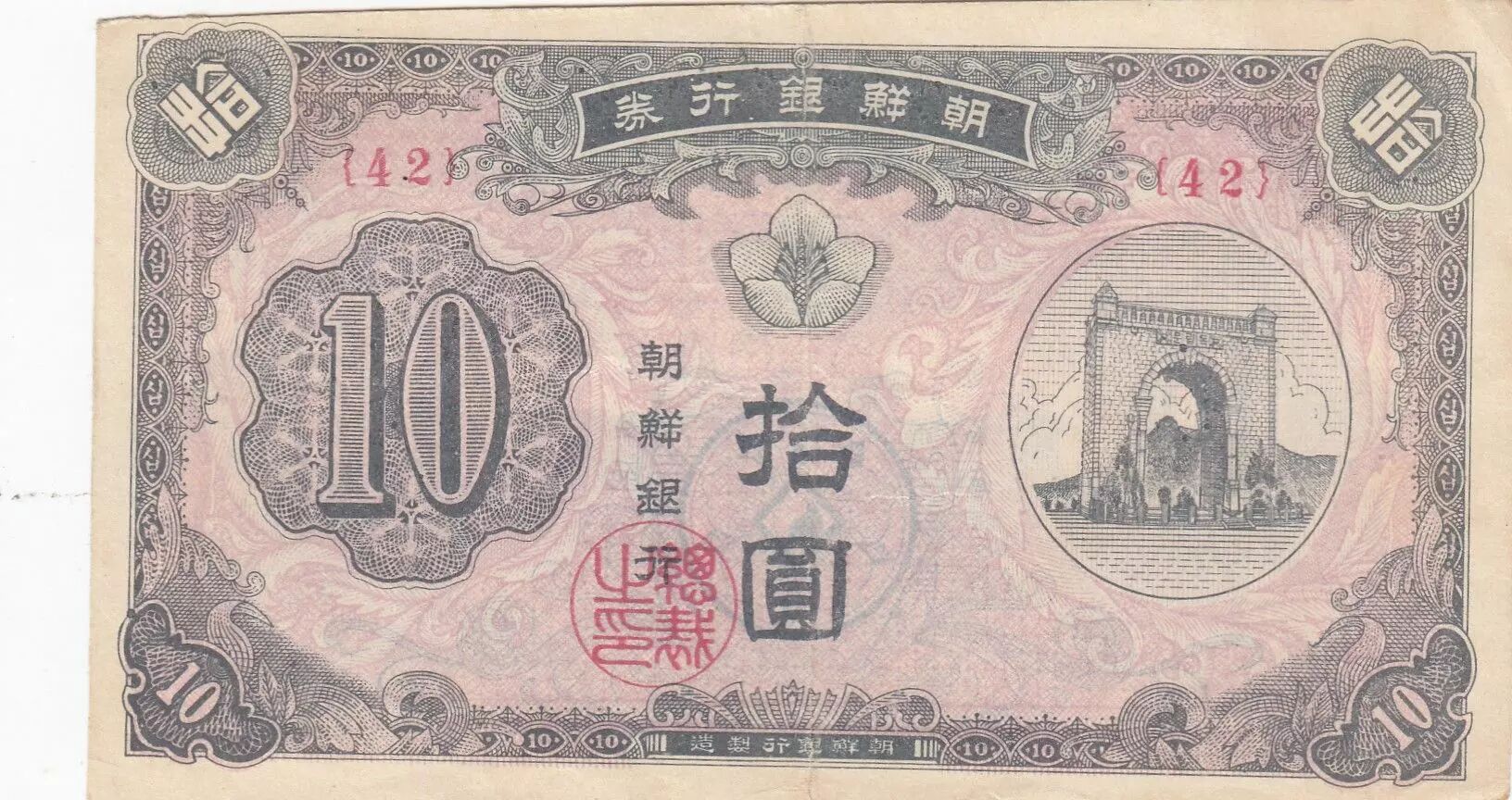 Home > > South Korea 10 Won City Gate - 1949 - P.2 - VF - Serial 42