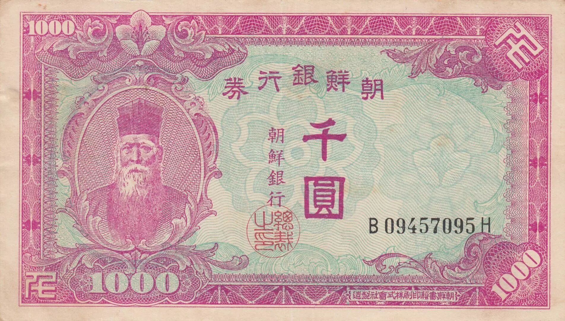 Banknote South Korea 1000 Won Man with beard - ND (1950) - Serial BH