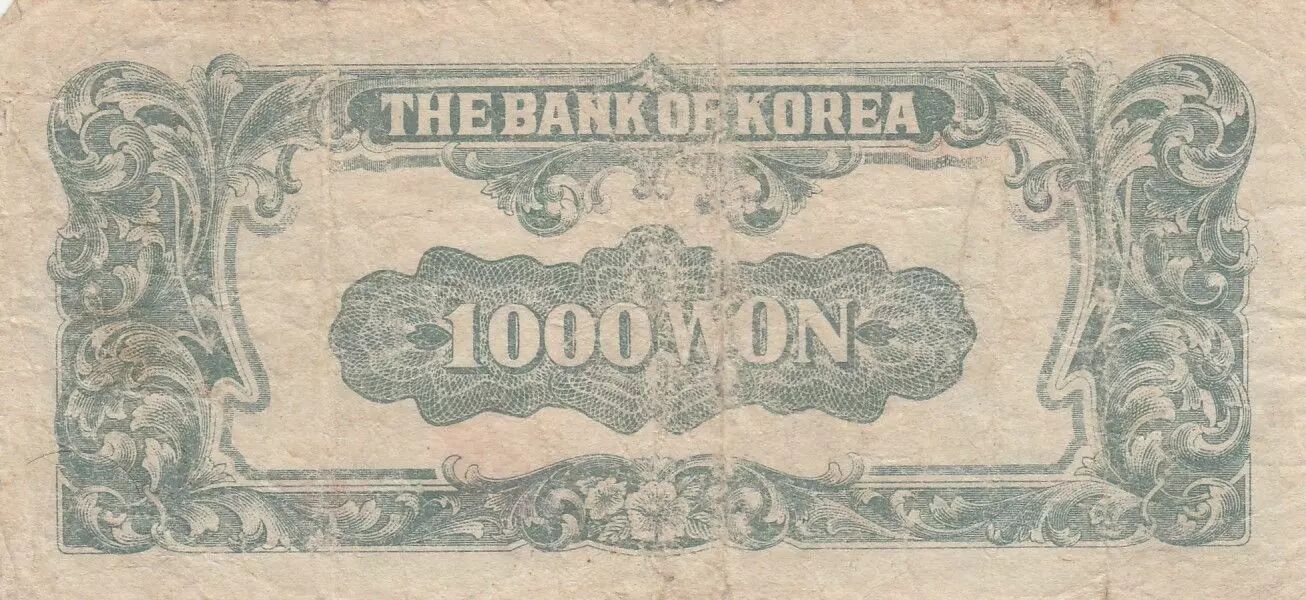 Home > World Banknotes > Asian Banknotes > South Korea > South Korea 1000 Won - President Syngman Rhee - Serial 24 - ND (1950)