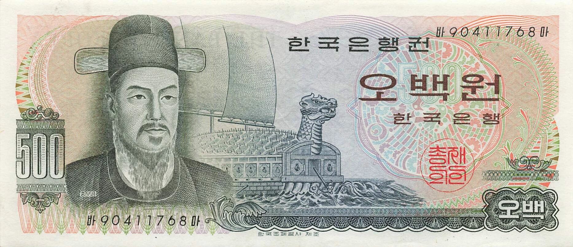 Home > World Banknotes > Asian Banknotes > South Korea > South Korea 500 Won - ND (1973-82) - P.43