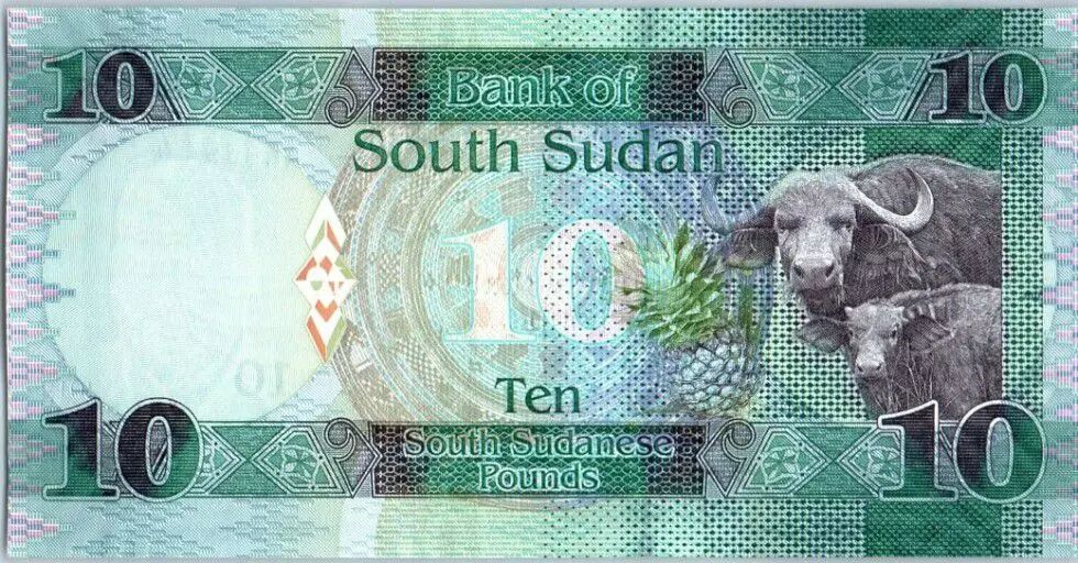 Banknote South Sudan 10 Pounds, Dr John Garang de Mabior - Buffalo - 2015