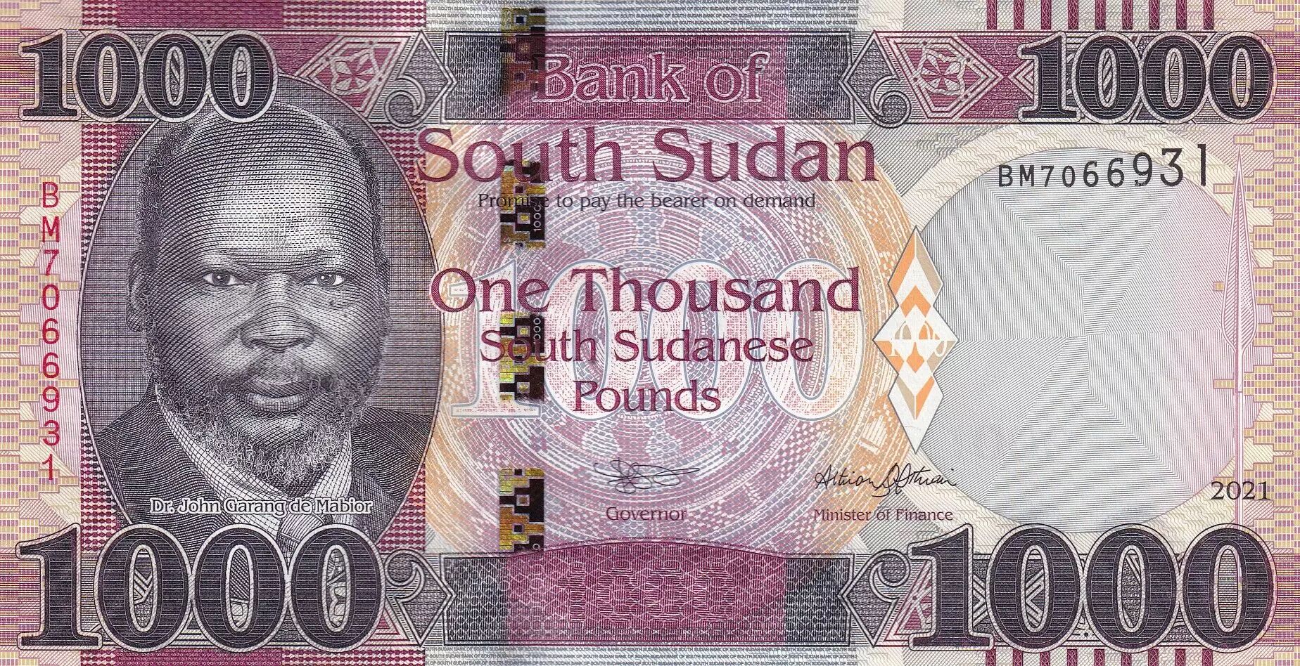 Banknote South Sudan 1000 Pounds - Dr John Garang de Mabior - Ostrich - Serial BM - 2015 - P.NEW