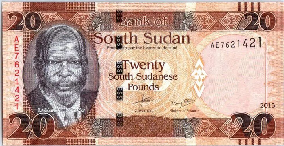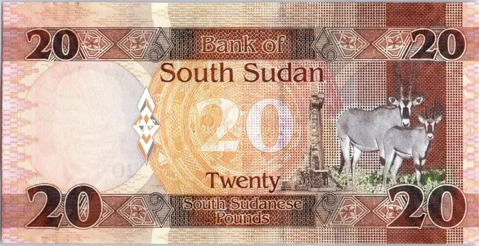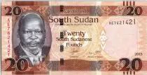 Banknote South Sudan 20 Pounds, Dr John Garang de Mabior - Antelopes - 2015
