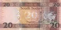 Banknote South Sudan 20 Pounds, Dr John Garang de Mabior - Antelopes - 2015