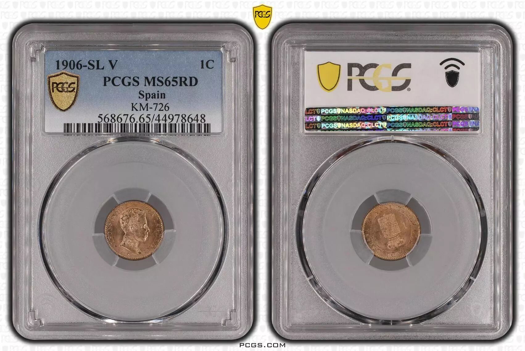 Coin Spain 1 centimo - Alfonso XIII -1906 - PCGS 65RD
