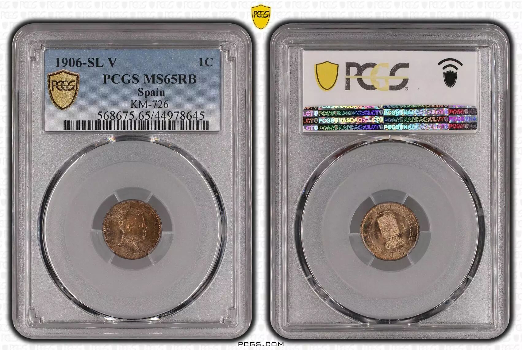 Coin Spain 1 centimo - Alfonso XIII - 1906 - PCGS MS65BN